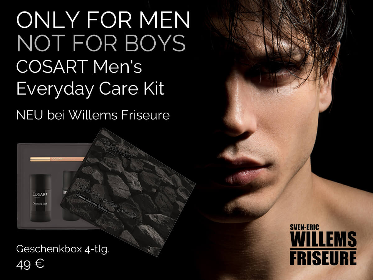 Das perfekte Make up rundet Ihr Styling ab. Ob nur für Sie selbst, Ihrem Liebsten oder zu einem besonderen Anlass - Ihr schönstes Ich bei Willems Friseure. Die dekorative Kosmetik von COSART bringen Sie zum Strahlen. Das seit über 30 Jahren bestehende Familienunternehmen produziert in Deutschland, dies tierversuchsfrei und ist auch für Allergiker bestens geeignet. Dipl. Visagist Sven-Eric Willems und COSART - die perfekte Kombination!