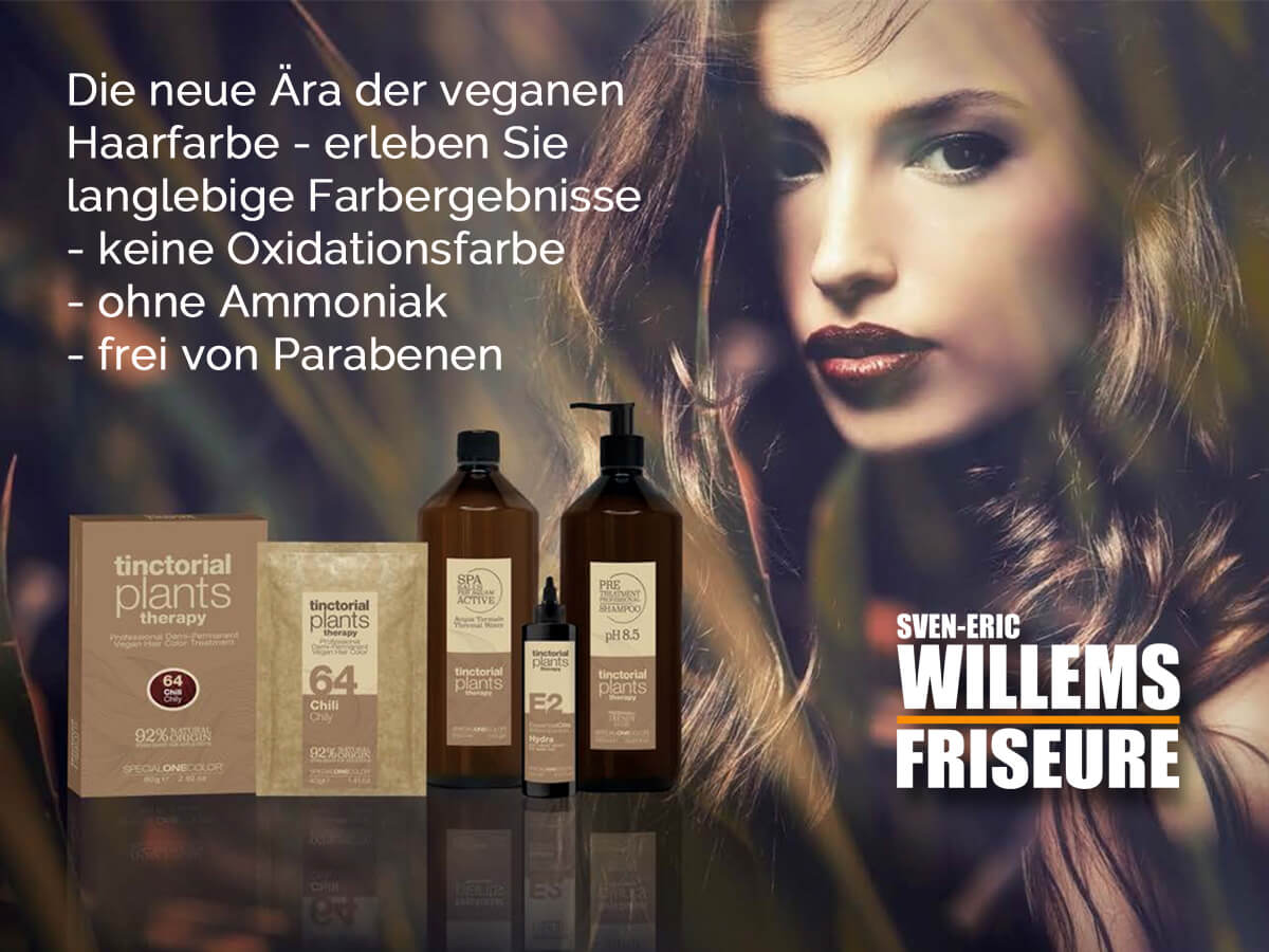Wir arbeiten ausschließlich mit hochwertigsten, friseurexklusiven Premiumprodukten, die nach strengen Kriterien ausgewählt werden, um Ihnen die bestmögliche Pflege und Styling Ihres Haares gewährleisten zu können. Die Pigmente der von uns verwendeten Haarfarbe aus Italien sind zu 99% rein. Für eine hervorragendes Finish und eine intensive Farbablagerung ist diese mit Karitebutter und Jojobaöl angereichert. Das kalibrierte Ammoniaksystem gehört gleichzeitig zu den niedrigsten, die bei Haarfarben eingesetzt werden. Auch bei uns im Angebot: vegane Pflanzenhaarfarben. Keine Oxidationsfarbe, ohne Ammoniak und frei von Parabenen.